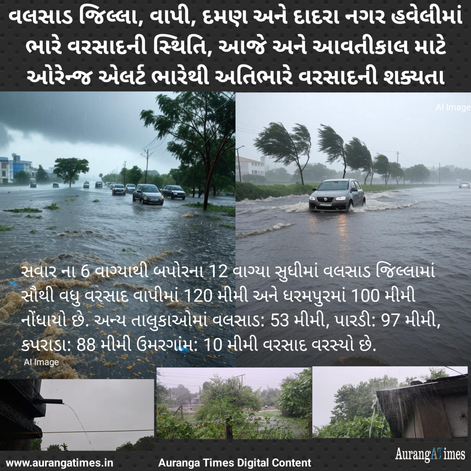 આમ, વલસાડ જિલ્લા, વાપી, દમણ અને દાદરા નગર હવેલીમાં ભારે વરસાદે જનજીવનને ખોરવી નાખ્યું છે. અમે આપને વિનંતી કરીએ છીએ કે આવી પરિસ્થિતિમાં ઘરની બહાર નીકળવાનું ટાળો અને સ્થાનિક વહીવટની સૂચનાઓનું પાલન કરો. વધુ અપડેટ્સ માટે અમારી સાથે જોડાયેલા રહો. આભાર, અને ફરી મળીશું.