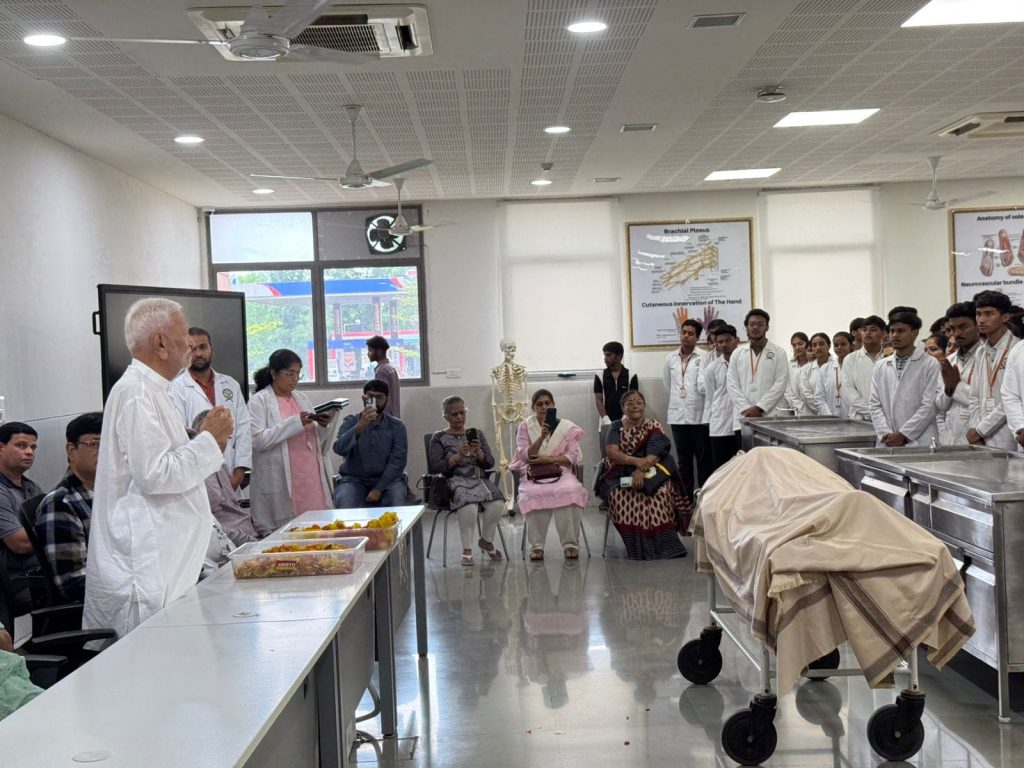 यह निःस्वार्थ कार्य चिकित्सा के विद्यार्थियों को मानव शरीर की संरचना को गहराई से समझने और जीवन रक्षक सेवाओं में दक्षता प्राप्त करने में महत्वपूर्ण योगदान देगा। इस पुण्य कार्य के अवसर पर प्रतिष्ठित उद्योगपति एवं परोपकारी व्यक्तित्व पद्मश्री गफूरभाई एम. बिलाखिया की गरिमामयी उपस्थिति ने कार्यक्रम को और प्रेरणादायक बनाया।