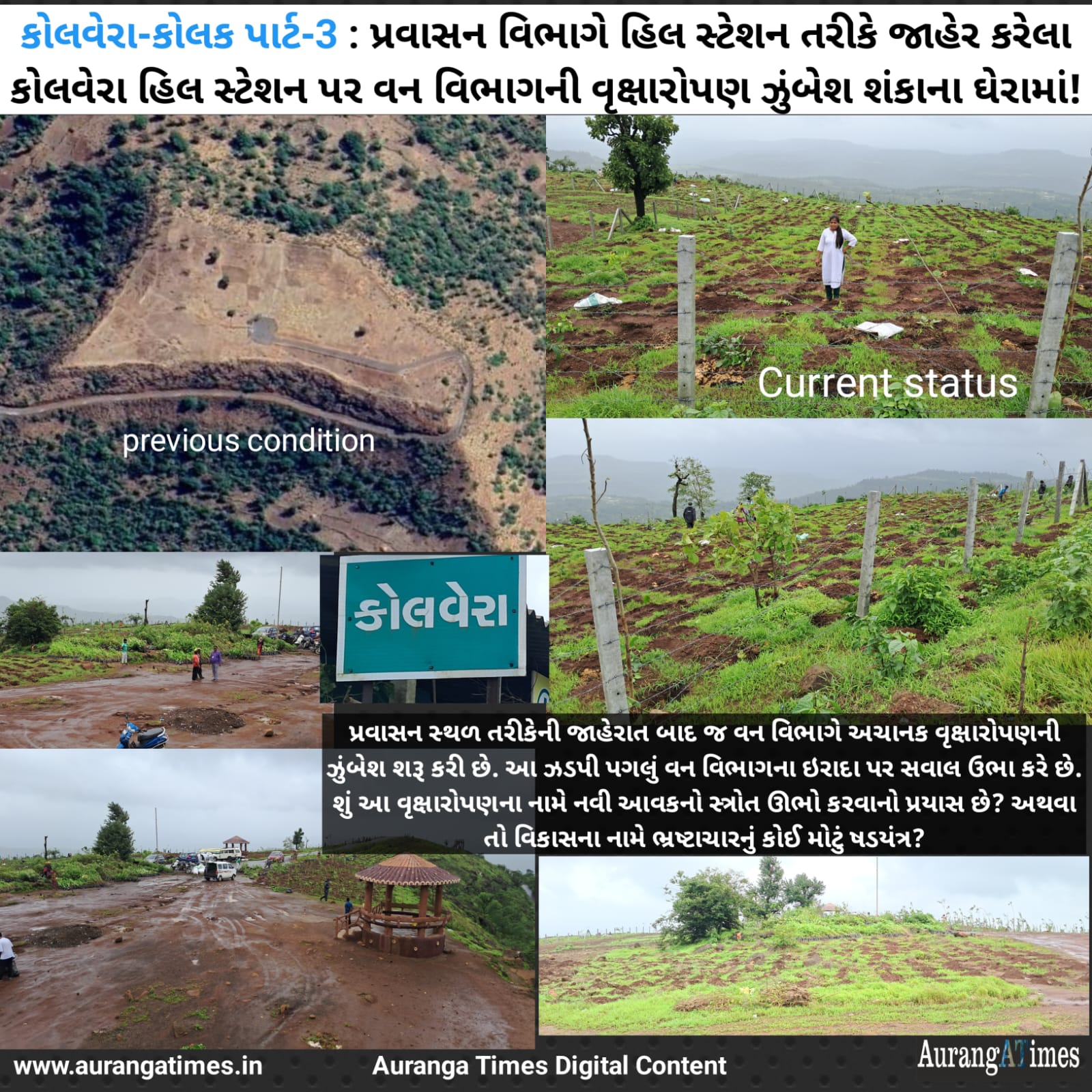 આ ઉમદા પહેલની વચ્ચે વન વિભાગની શંકાસ્પદ ભૂમિકા ચર્ચાનો વિષય બની છે. પ્રવાસન વિભાગે કોલવેરાને હિલ સ્ટેશન જાહેર કર્યું એટલે જ વન વિભાગ અચાનક સફાળું જાગ્યું છે. મળતી માહિતી મુજબ, વન વિભાગે કોલવેરા પર્વતની ટોચે 70 પ્રકારના 20,000 વૃક્ષોનું વાવેતર શરૂ કર્યું છે. આ પગલું નિશ્ચિતપણે પર્યાવરણની દૃષ્ટિએ સ્વાગતપાત્ર છે, પરંતુ તેની પાછળનો હેતુ અને સમય શંકા ઉપજાવે છે. વન વિભાગે આ પર્વતને વર્ષો સુધી રઝળતો છોડી દીધો હતો, અને હવે જ્યારે તેનું પ્રવાસન મૂલ્ય વધ્યું છે, ત્યારે અચાનક વૃક્ષારોપણની ઉતાવળ શા માટે?