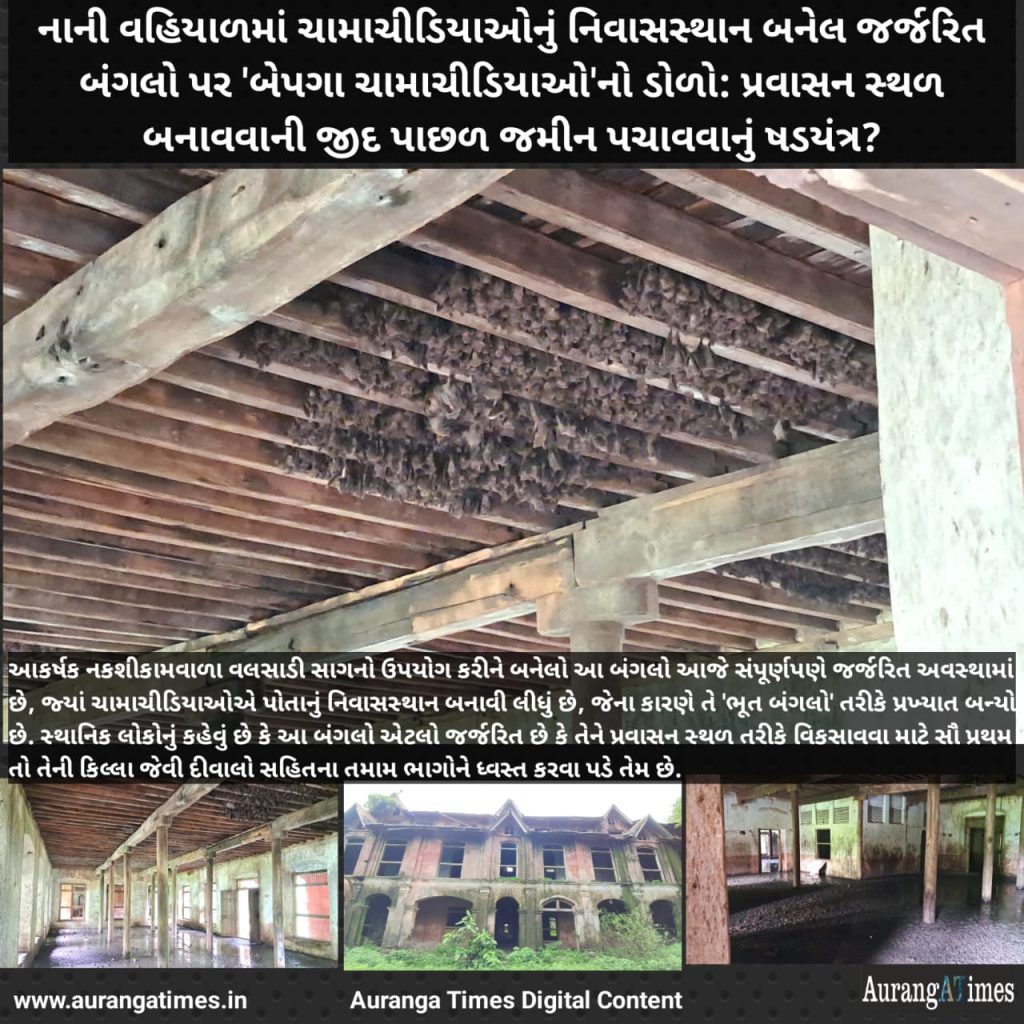 આજે ચામાચીડિયાનું ઘર બનેલા આ (જર્જરિત) બંગલા પર હવે કેટલાક ‘બેપગા ચામાચીડિયા’ એટલે કે સ્વાર્થી તત્વોનો ડોળો હોવાની ચર્ચાઓએ જોર પકડ્યું છે. શું ખરેખર આ બંગલાને પ્રવાસન સ્થળ બનાવવાની યોજના પાછળ કોઈ મોટું ષડયંત્ર છુપાયેલું છે? આ સવાલ સ્થાનિકોમાં ચર્ચાનો વિષય બન્યો છે.