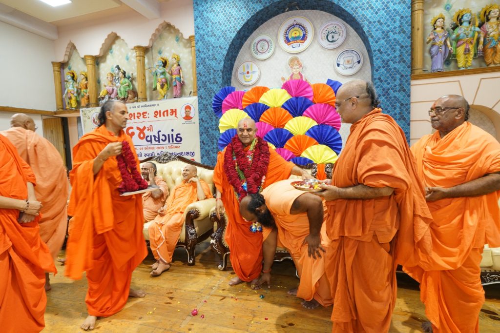 રક્તદાન શિબિર બાદ વચનામૃતમ હોલમાં સન્માન સમારોહ યોજાયો હતો. આ કાર્યક્રમમાં ગુરુવર્ય પૂરાણી સ્વામી કેશવ ચરણદાસજી, સ્વામી ભાનુપ્રકાશદાસજી, વડતાલ સત્સંગ સભાના પ્રમુખ નૌતમ સ્વામી, વિજ્ઞાન સ્વામી સહિત અનેક સંતો અને મહાનુભાવો ઉપસ્થિત રહ્યા હતા. જિલ્લા શિક્ષણાધિકારી ડૉ. રાજેશ્રીબેન ટંડેલ પણ આ પ્રસંગે હાજર રહીને સ્વામીજીને જન્મદિવસની શુભકામનાઓ પાઠવી હતી.