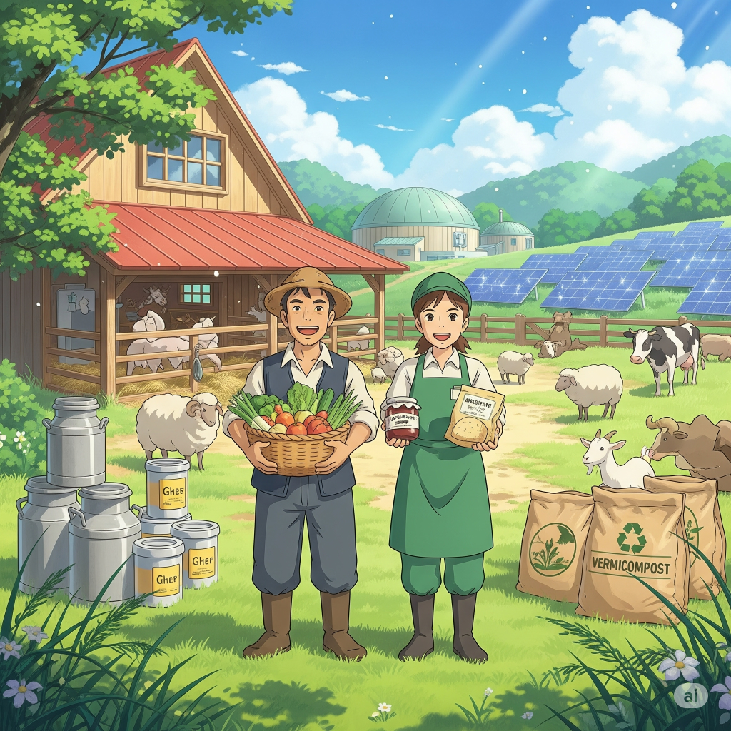 2. છાણ અને ગૌમૂત્રની જૈવિક ક્રાંતિ: ગાયના છાણમાંથી વર્મીકમ્પોસ્ટ અને બાયોગેસ બનાવી શકાય, જેનો ભાવ રૂ. 10-20 પ્રતિ કિલો છે. 50 ગાયો વર્ષે 5-10 લાખની આવક આપે. ગૌમૂત્ર આયુર્વેદિક દવાઓ અને ખેતી માટે રૂ. 50-100 પ્રતિ લિટરે વેચાય, જે વર્ષે 2-5 લાખની આવક આપે.