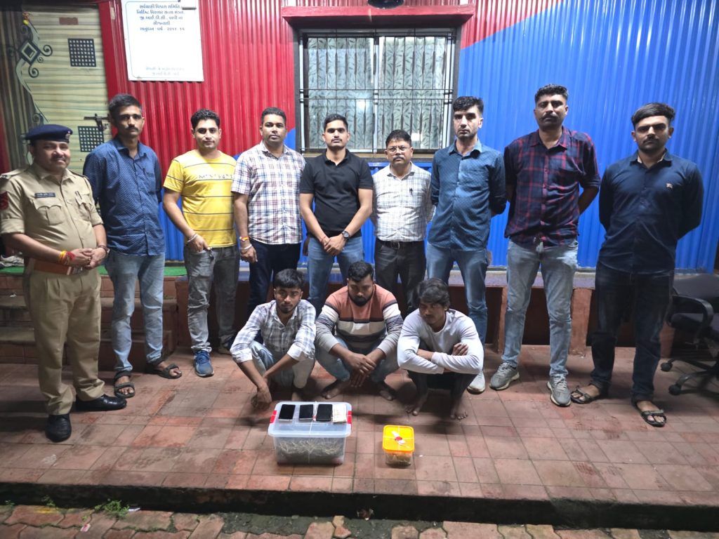 ડુંગરા, વાપી: ડુંગરા પોલીસે એક મોટી સફળતા મેળવી છે, જેમાં છીરી ખાતેથી ગેરકાયદેસર ગાંજાના મોટા જથ્થા સાથે ત્રણ આરોપીઓને ઝડપી પાડવામાં આવ્યા છે. આ કામગીરી વલસાડ જિલ્લા પોલીસ અધિક્ષક યુવરાજસિંહ જાડેજા (IPS) ના માર્ગદર્શન હેઠળ કરવામાં આવી હતી.