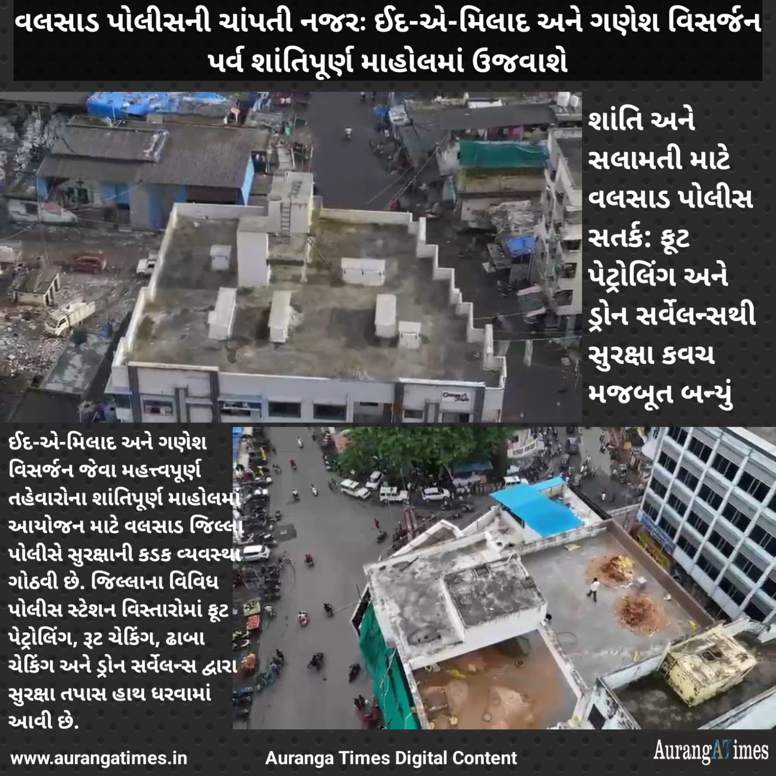 પગપાળા પેટ્રોલિંગ, રૂટ ચેકિંગ અને ડ્રોન સર્વેલન્સ: વલસાડ પોલીસનો સુરક્ષાનો ત્રિ-પાંખિયો વ્યૂહ.