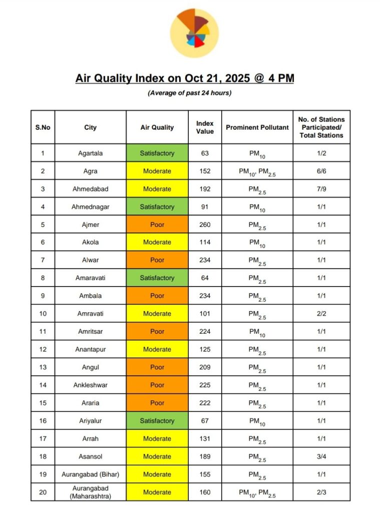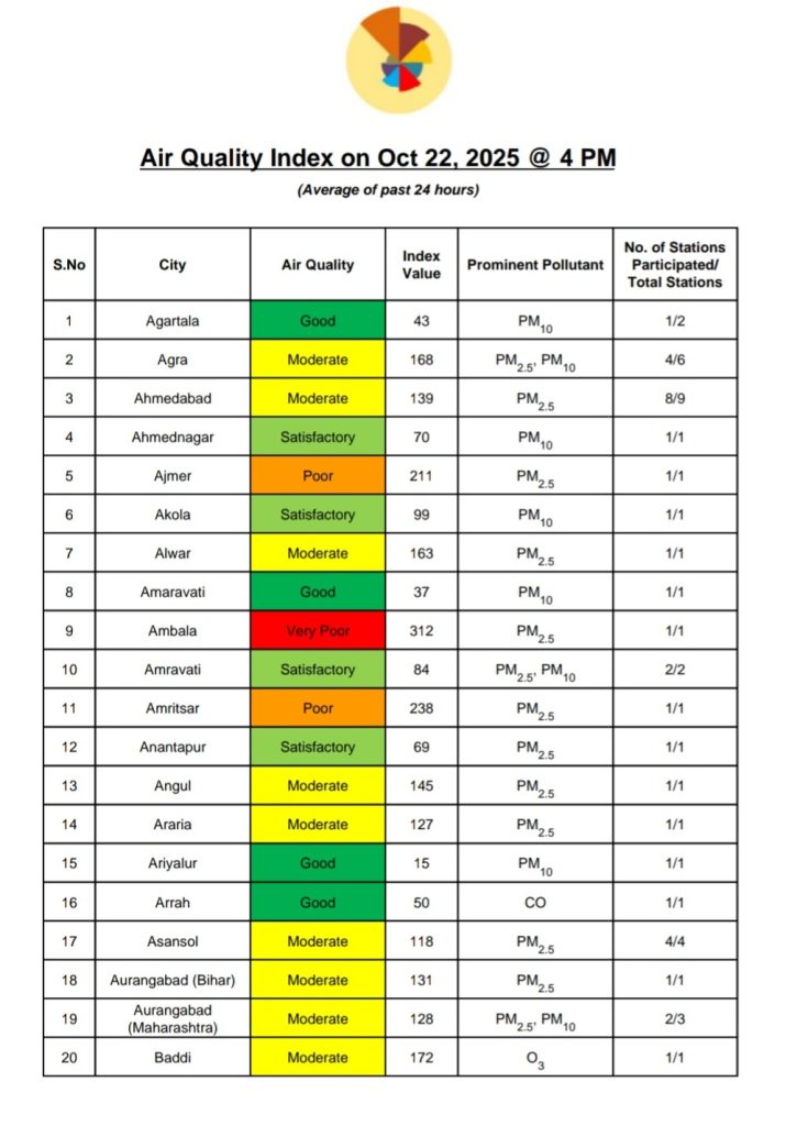 પરંતુ, અંકલેશ્વર માટે 22 ઓક્ટોબરનો ડેટા અપૂર્ણ છે, જ્યારે 21 ઓક્ટોબરે તેની 225 (ખરાબ)ની સ્થિતિ ચિંતાજનક છે, જે લાંબા સમયના સંપર્કથી શ્વાસની સમસ્યાઓનું જોખમ વધારે છે. 21 ઓક્ટોબરે વટવા (200) અને સુરત (192) પણ ખરાબની નજીક હતા, જે ચેતવણીનો સંકેત આપે છે. જો હવામાન અથવા પ્રદૂષણના સ્ત્રોતોમાં ફેરફાર ન થાય, તો આગામી દિવસોમાં સ્થિતિ ખરાબ થઈ શકે!