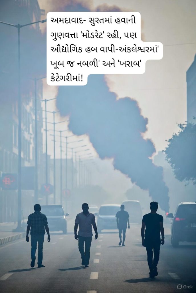 ગુજરાતમાં હવાની ગુણવત્તાનું ચિત્ર બે ભાગમાં વહેંચાયેલું છે. એક તરફ, અમદાવાદ જેવા શહેરોમાં હવા ‘મધ્યમ’ સ્તર પર પાછી આવી છે, જે રાહતની વાત છે. બીજી તરફ, વાપી, અંકલેશ્વર, વટવા અને નંદેસરી જેવા ઔદ્યોગિક કેન્દ્રોમાં હવા હજી પણ ગંભીર સ્તરે પ્રદૂષિત છે. ‘ખૂબ જ નબળી’ કેટેગરીમાં AQI નો પ્રવેશ જાહેર આરોગ્ય માટે સીધો ખતરો છે. વહીવટી તંત્ર અને ઔદ્યોગિક એકમોએ હવાની ગુણવત્તા સુધારવા માટે તાત્કાલિક અને કડક પગલાં લેવાની જરૂર છે. સંવેદનશીલ નાગરિકોને સલાહ આપવામાં આવે છે કે તેઓ આવા પ્રદૂષિત વિસ્તારોમાં બહારની પ્રવૃત્તિઓ મર્યાદિત કરે.