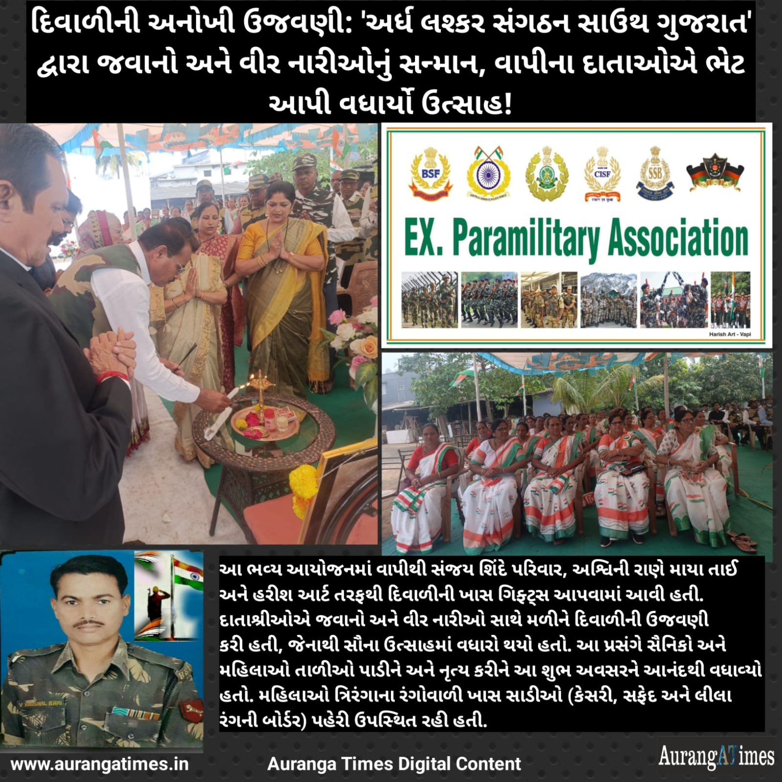 દિવાળી અને નવા વર્ષના પાવન અવસર પર, અર્ધ લશ્કર સંગઠન સાઉથ ગુજરાત દ્વારા દેશની રક્ષા કરનાર જવાનો અને શહીદ થયેલા જવાનોના પરિવારજનો એટલે કે વીર નારીઓ માટે એક સન્માન અને શુભકામના કાર્યક્રમનું આયોજન કરવામાં આવ્યું હતું.