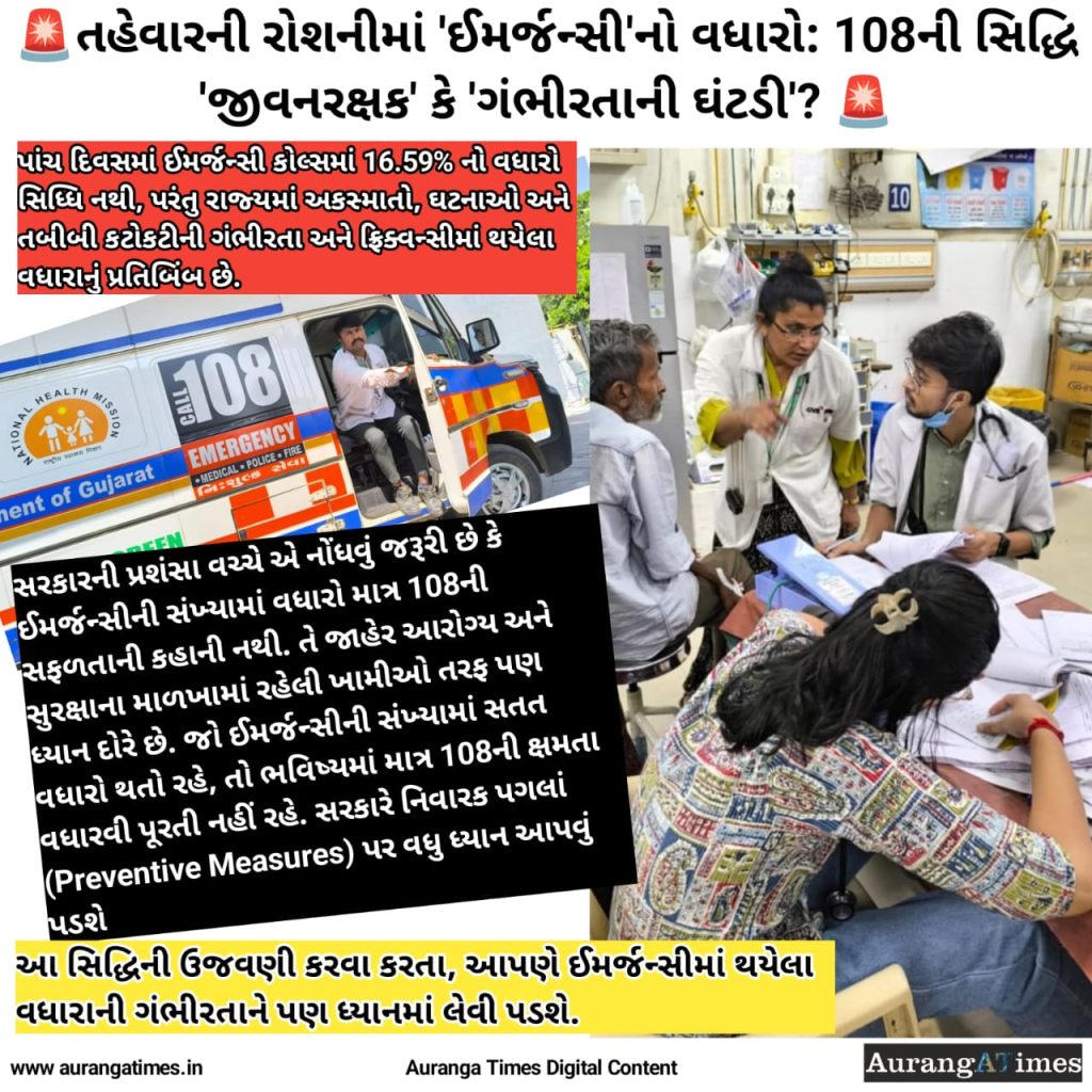 પાંચ દિવસમાં ઈમર્જન્સી કોલ્સમાં થયેલો 16.59% નો વધારો માત્ર ‘વધેલી કામગીરી’ નથી, પરંતુ રાજ્યમાં અકસ્માતો, ઘટનાઓ અને તબીબી કટોકટીની ગંભીરતા અને ફ્રિક્વન્સીમાં થયેલા વધારાનું પ્રતિબિંબ છે.