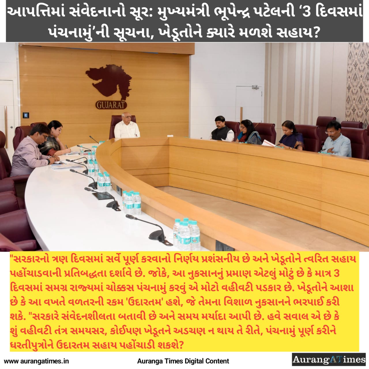 મુખ્યમંત્રીનો ધ્યેય સ્પષ્ટ છે: ‘આ વિગતો જેટલી ઝડપથી મળી શકે તેટલી ઝડપથી સરકારને પહોંચાડીને ખેડૂતોને થયેલા નુકસાન સામે રાજ્ય સરકાર સહાયરૂપ થશે તેવો આપણો ધ્યેય છે.’