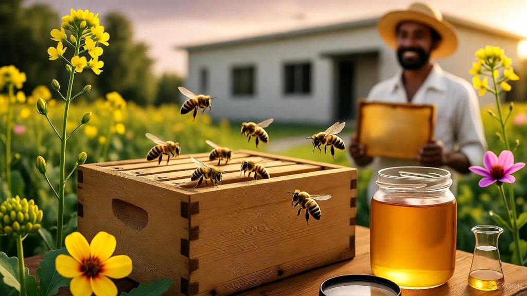 આ છે ભારત સરકારનું મહત્ત્વાકાંક્ષી નેશનલ બીકીપિંગ એન્ડ હની મિશન (NBHM), જે ‘આત્મનિર્ભર ભારત’ હેઠળ ‘સ્વીટ રિવોલ્યુશન’ નું લક્ષ્ય લઈને આવ્યું છે. માત્ર ₹500 કરોડના બજેટ સાથે, આ મિશન મધમાખી ઉછેરને શોખમાંથી એક સંગઠિત અને વૈજ્ઞાનિક ઉદ્યોગમાં બદલી રહ્યું છે!
